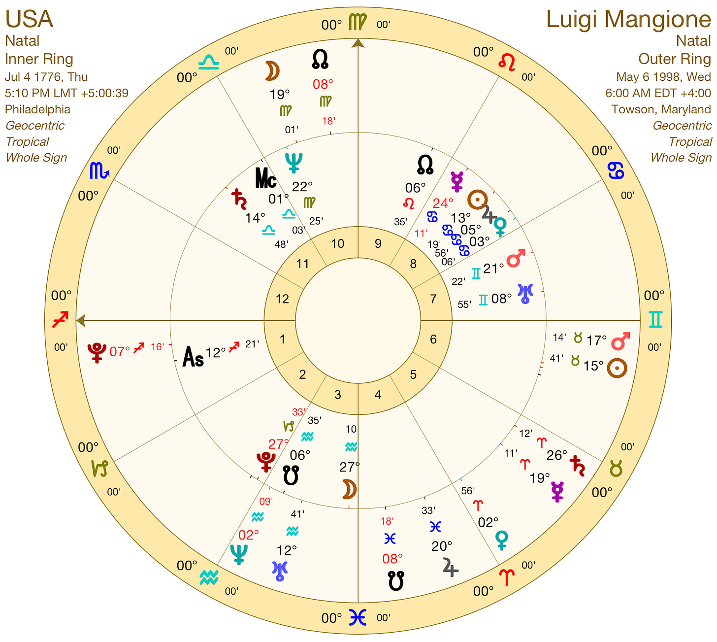 PART TWO: Although still presumed innocent, Mangione has permanently invaded America’s imagination with its veneration of vigilantes and folk heroes. What does the astrological synastry reveal?